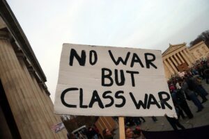 Kapitalistische Staaten stärken ihre jeweiligen Konzerne auf dem internationalen Markt und damit ihre Machtstellung in der Welt. Es geht Deutschland nicht darum eine wertebasierte Demokratie zu verteidigen, sondern darum, die Machtinteressen der größten Konzerne und ihrer Besitzer zu sichern. Lieber werden die reichsten Deutschen noch reicher und Profite gesichert, statt etwas für die Weltbevölkerung getan. Das haben wir bereits beim Klima gesehen: Statt einer auf Bedürfnisse ausgerichteten Wirtschaft haben wir ein fossiles Wirtschaften für die Profite der fossilen Konzerne, ob Kohle, Auto oder Gas. Und jetzt sollen diese Interessen durch Wettrüsten und potenziell kriegerische Auseinandersetzungen gesichert werden und wir dienen als Kanonenfutter.